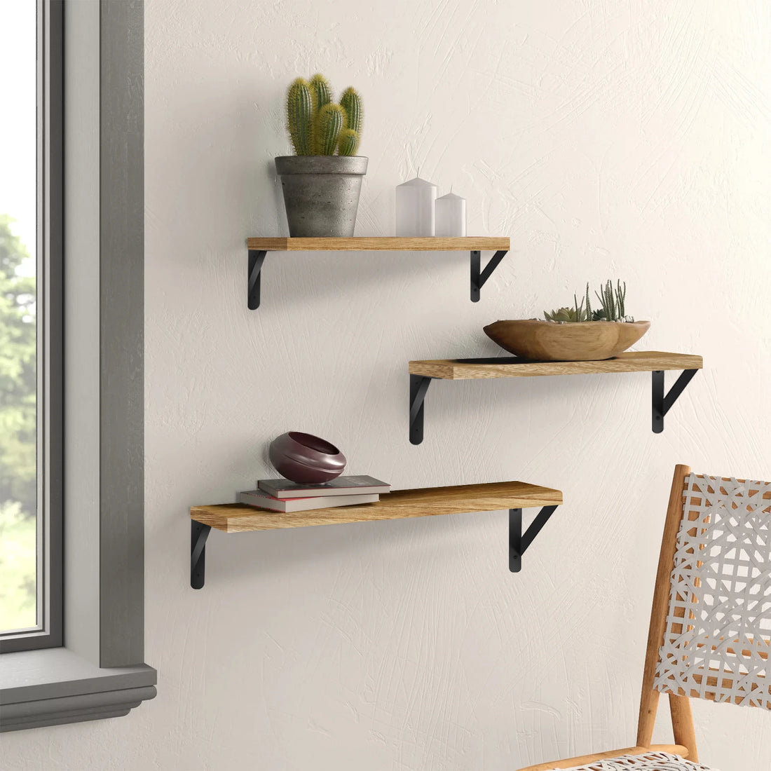 DayPlus Floating Shelves 3 Pieces Wall Shelf Wood and Metal, Wall Shelves for Storage, Rustic Metal Wire, for Home, Office