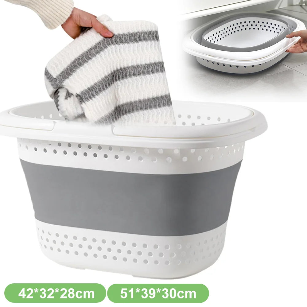Collapsible Storage Basket Laundry Basket Folding Pop Up Bathroom Dirty Clothes Basket with Handle Home Laundry Room Organizer