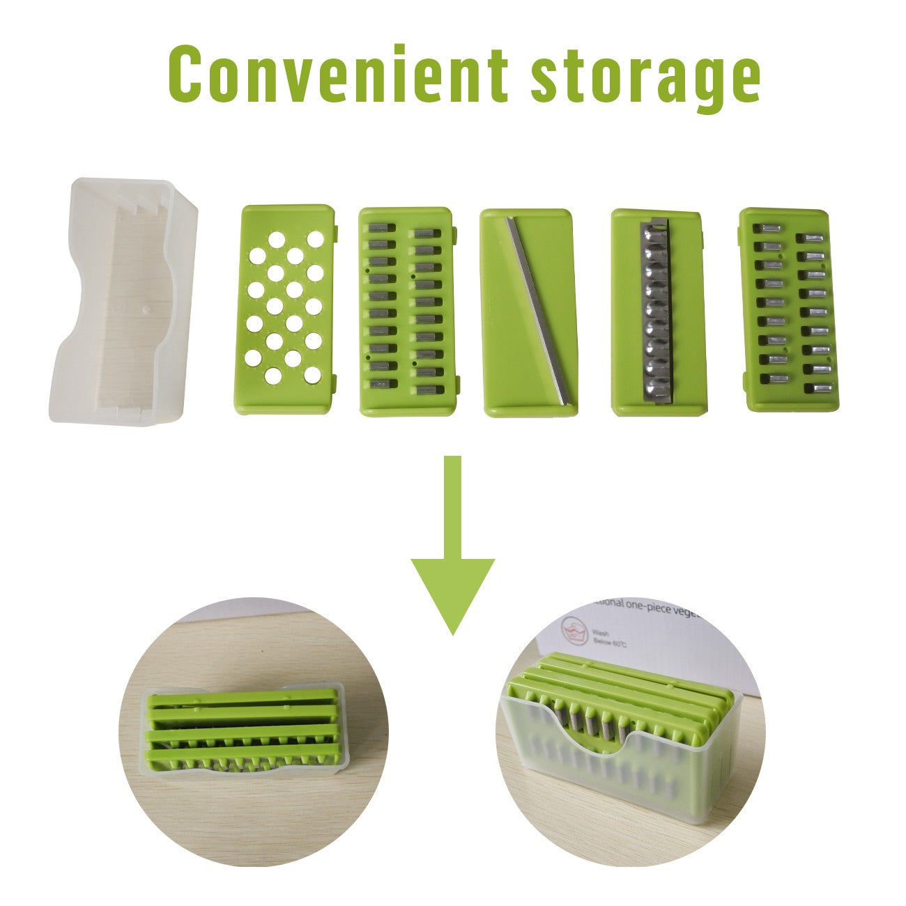 vegetable cutterUse the hand guard and chop your ingredients thoroughly. No more cuts or bruises when chopping carrots, potatoes, and other fruits and vegetables. Everything is collected directly in the container, making cooking easier. |